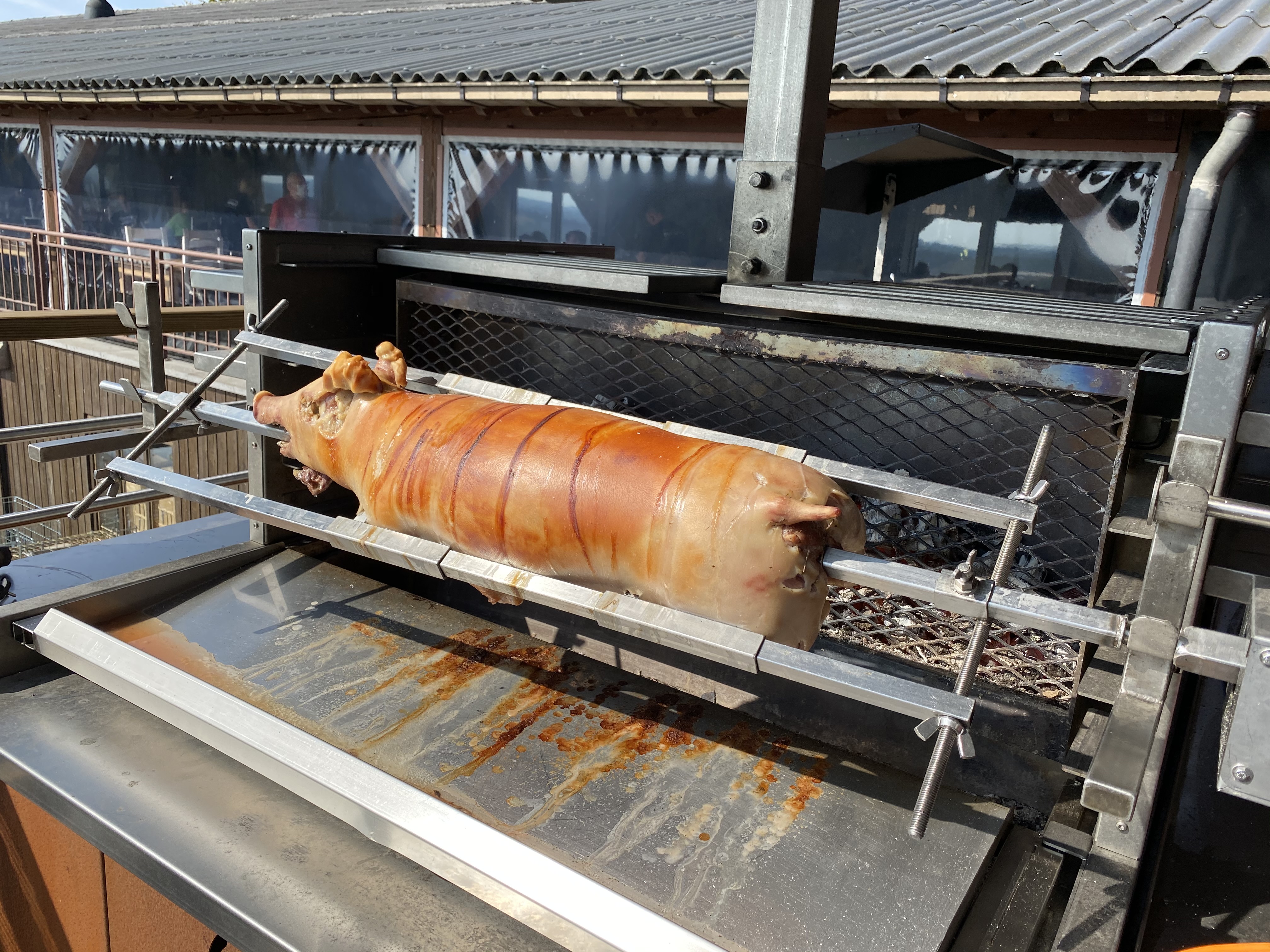 - 1 barbecue en inox avec broche et moteur pour griller le porcelet